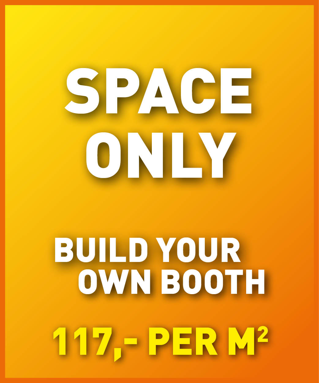 Bekijk op de plattegrond wat er nog beschikbaar is. Soms is het mogelijk twee stands te combineren tot één grote stand. Wij kijken graag met je mee. Space Only is mogelijk vanaf 20m2.