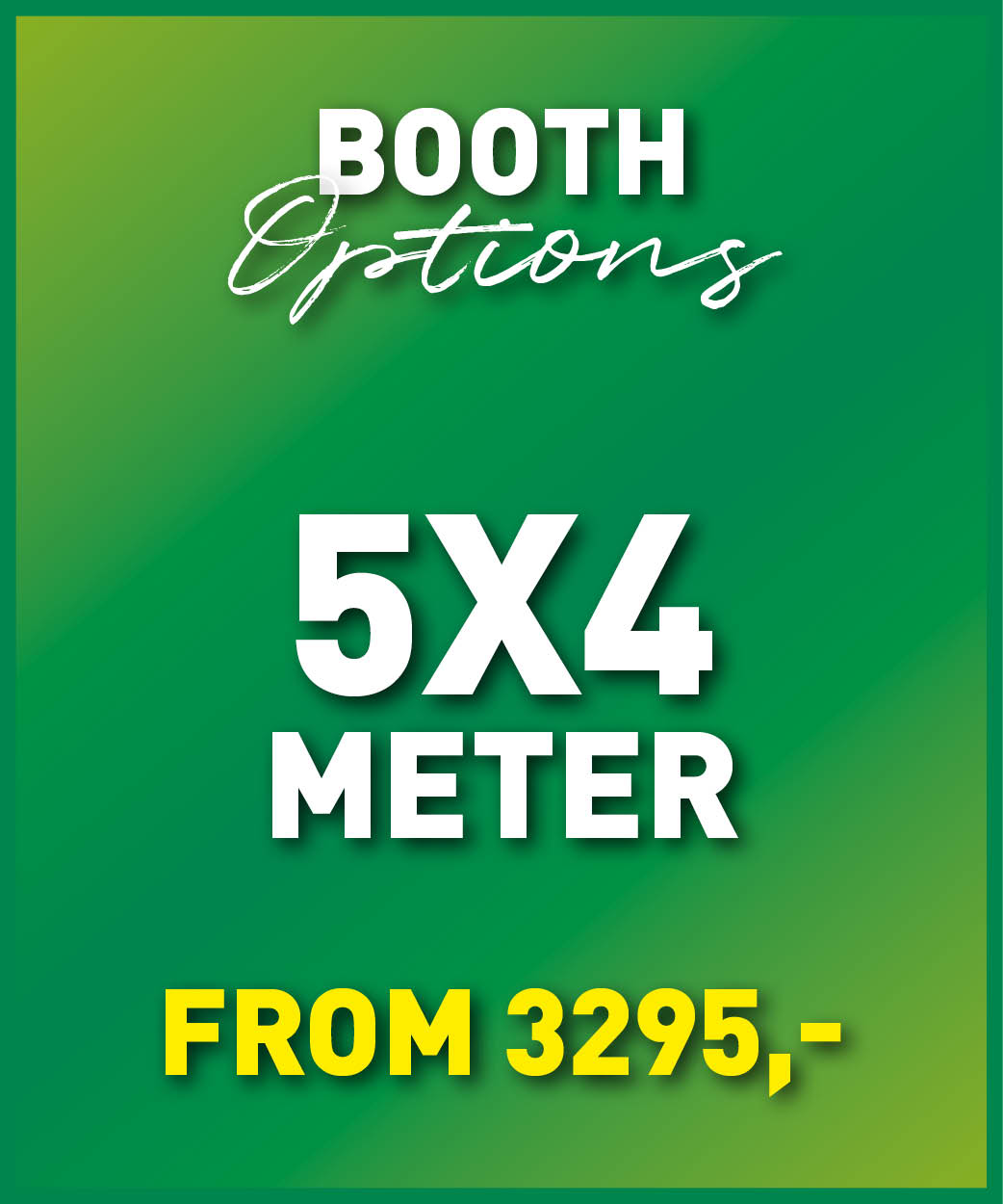 Afmeting: Deze stands is 5 meter breed x 4 meter diep.