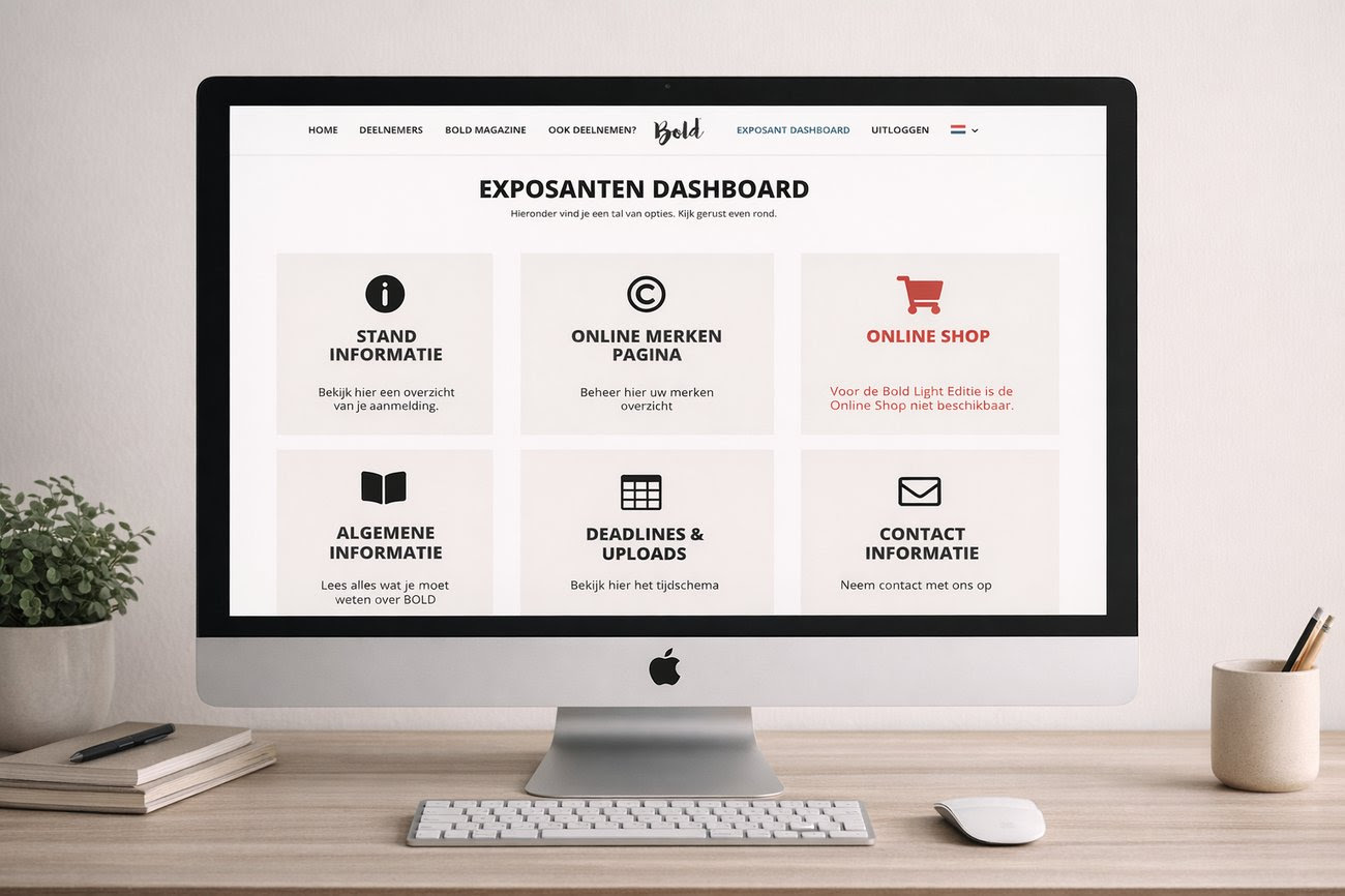 Na je officiële aanmelding en een bevestiging van je deelname ontvang je van ons (rond 24 maart 2025) een mail met een link naar je eigen Bold Online Shop omgeving. Activeer je account door op de link te klikken en een wachtwoord aan te maken. Helaas kunnen we maar één persoon per account uitnodigen voor de Online Shop. Wil je dat een collega er ook in kan, deel dan je inloggegevens.