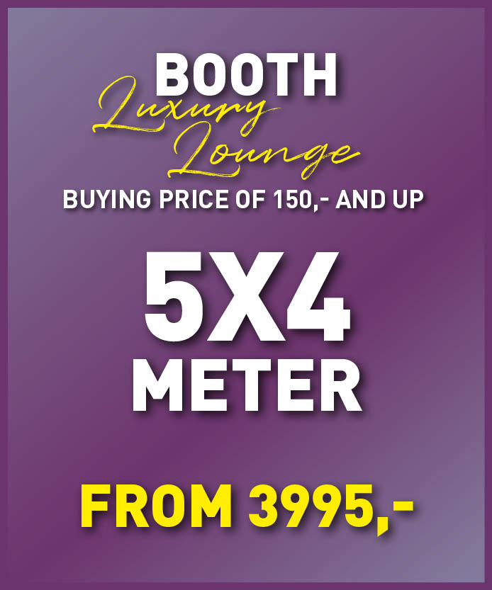 Wegens de exclusieve meubels hebben we hier een zeer beperkt aantal stands van beschikbaar. Ze zijn aangegeven in een paarse kleur op de plattegrond. Hieronder vind je meer informatie. Prijs is 3995,-