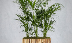 Houten plantenbak met Kentia palm Moderne plant in een mooie bak. Leuk voor een huiselijke setting. | € 225,00 | |||